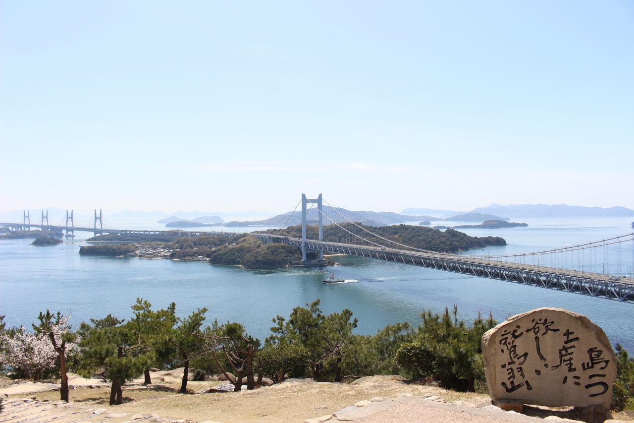 瀬戸大橋を見渡せる展望台で、瀬戸内海と合わせた景色がすばらしかったです。少しですが桜もあってちょうど満開でした。遊歩道があって第二展望台→第一展望台→頂上→東屋と歩きました。違う景色が楽しめますので、眺めがよいので散策することをお勧めします。