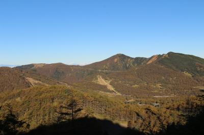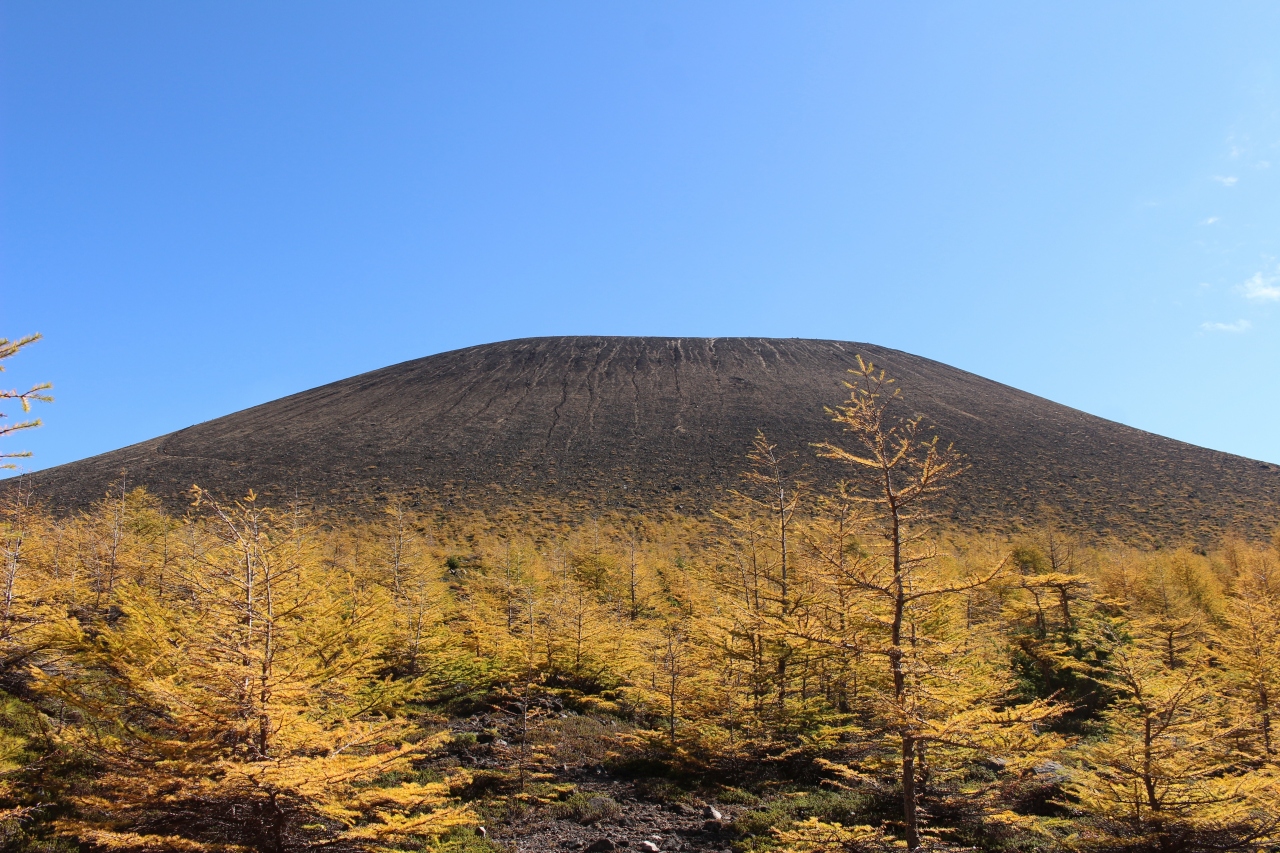 麓のカラマツの黄葉がすばらしいという情報だったので、前掛山までですが登山に向かいました。車坂峠からトーミの頭、Jバンド、賽ノ河原を経て前掛山に向かうルートでしたが、黄葉が本当にきれいでした。ただ前掛山辺りは冷たい強風で、さっさと下山しました。