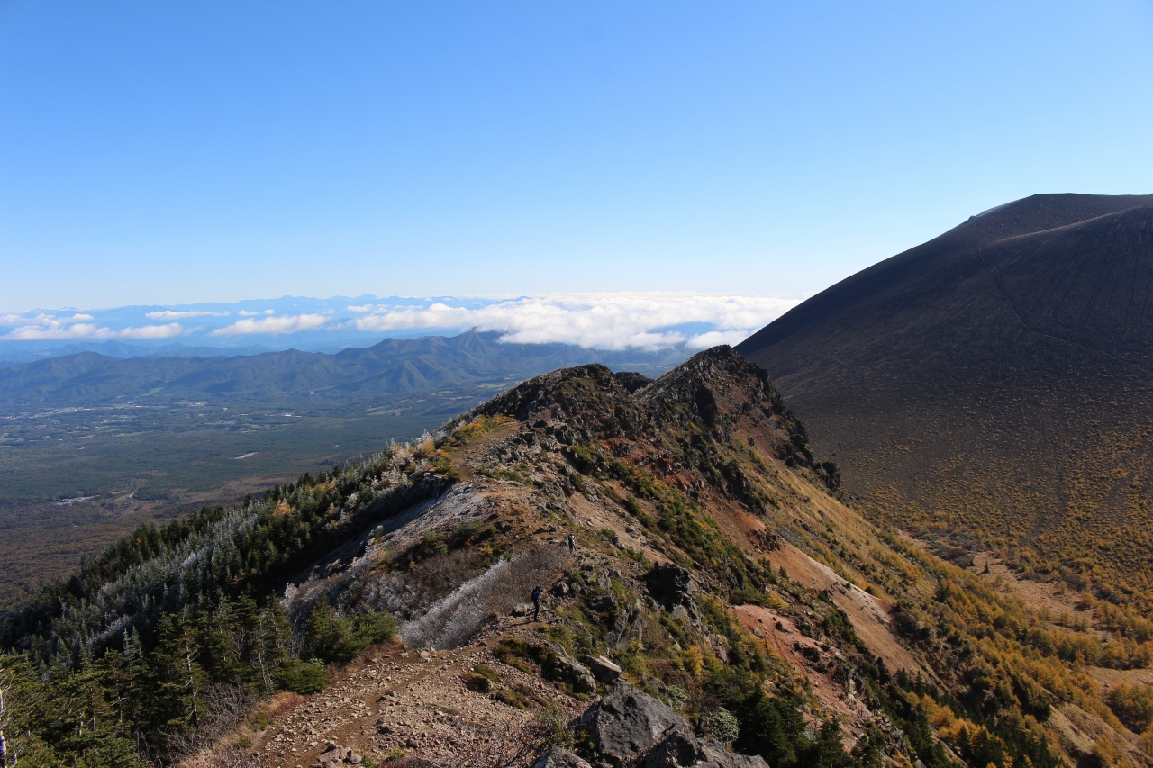 浅間山(前掛山)登山の際、車坂峠から出発、トーミの頭を経て外輪山をう回、その途中に蛇骨岳があります。この辺りは浅間山もよく見えるし外輪山の景色もすばらしいし、北側の景色も開けて、眺望がすばらしい登山道です。