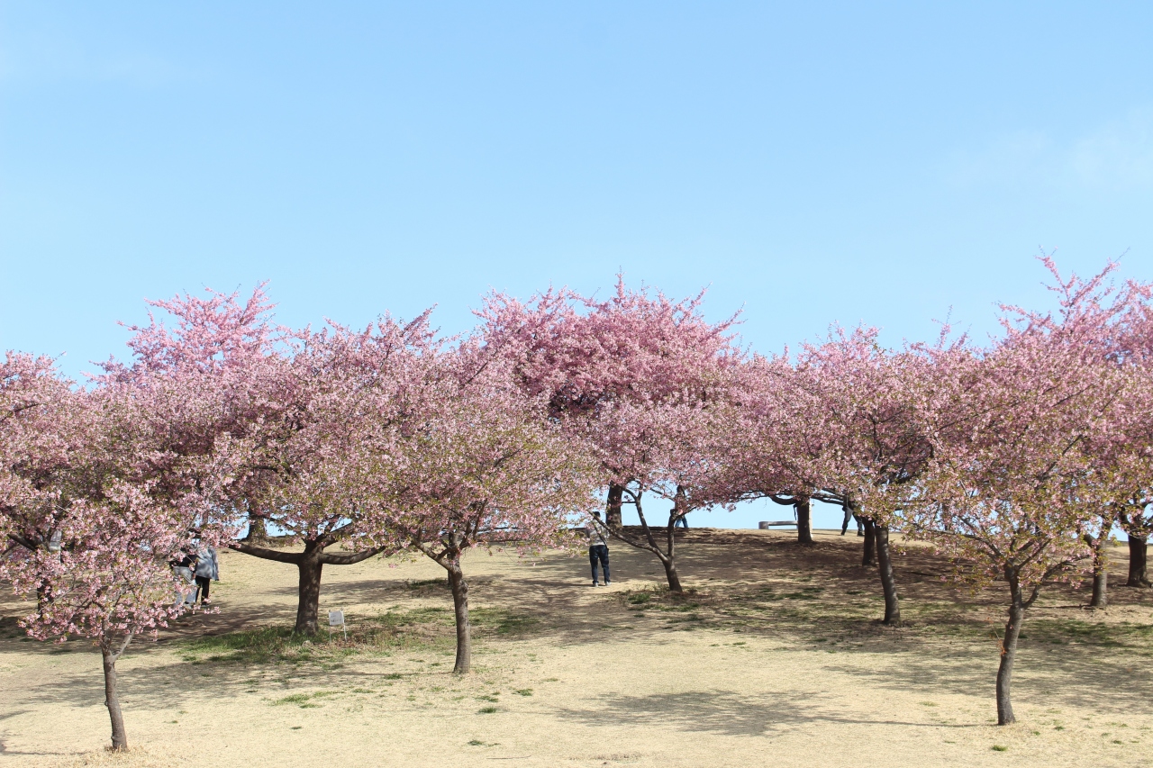 公園内の丘に河津桜が植えられています。開花時期は気象条件により異なりますが満開になると、なかなか圧巻の景色です。まだ若い木もありますが、枝ぶりも見事な木もあって、丘に沿って植えられているので、立体感のある景色が見られます。なかなかの場所かと思います。