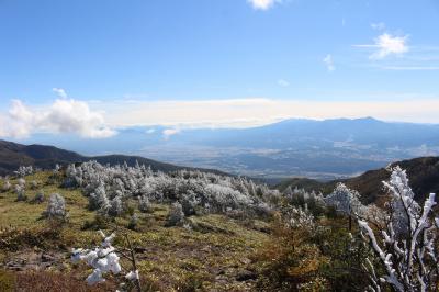 紅葉登山で湯ノ丸山へ行った際、少し先の烏帽子岳まで足を伸ばしてみました。湯ノ丸山から鞍部までいったん下って登り返す形になりましたが、途中からずっと展望のよい道でした。残念ながら紅葉はほぼなかったですが、かわりに樹氷がきれいでした。