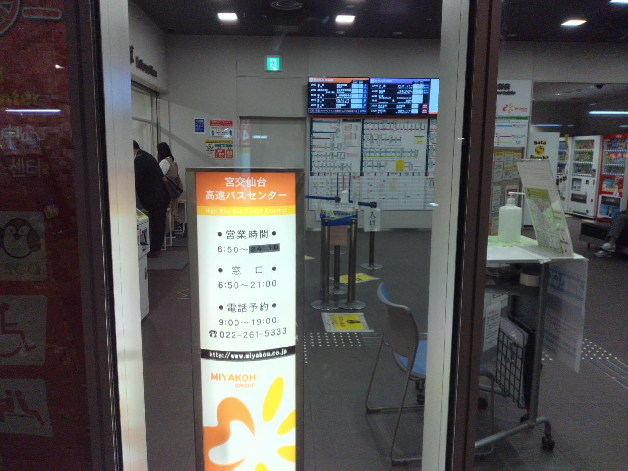 高速バスの落合室、バスタ新宿ほどではないけれどバス待ちを座って休みながら待つことができます。トイレもあるし雨風も防げます。仙台駅からもそれなりに近いです。到着時トイレに寄ろうとしたら営業時間前で利用できなかったのが残念でした。到着便に合わせて営業してもらえると有り難いです。