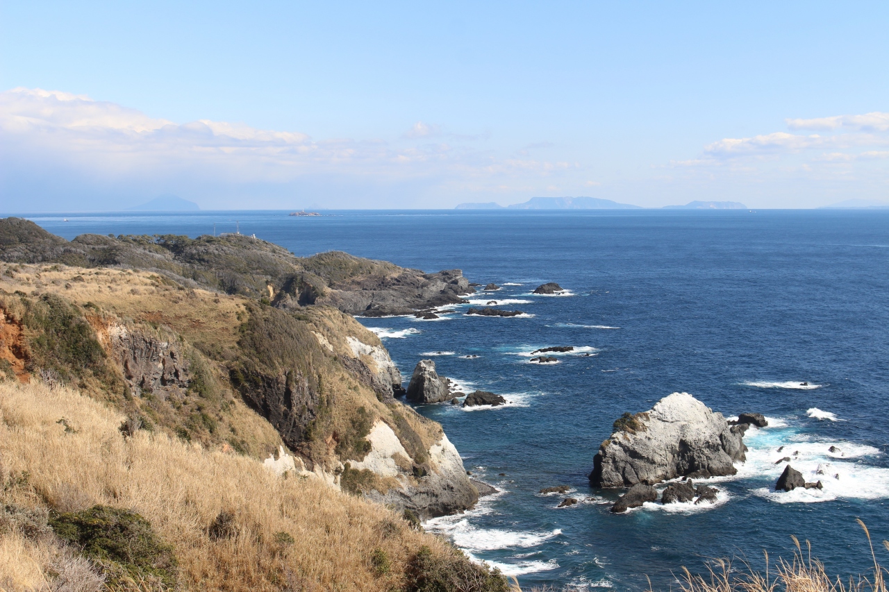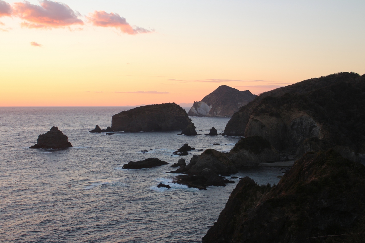 ここから夕日見ようと下田の宿から急ぎましたが、ぎりぎり間に合わず、残念でした。でもお残照の夕焼けの海もきれいでした。場所と駐車場もあるのでほかにも結構見に来ている人もいました。以前にも来たことあるけど、ダイナミックな伊豆の景色が見れました。