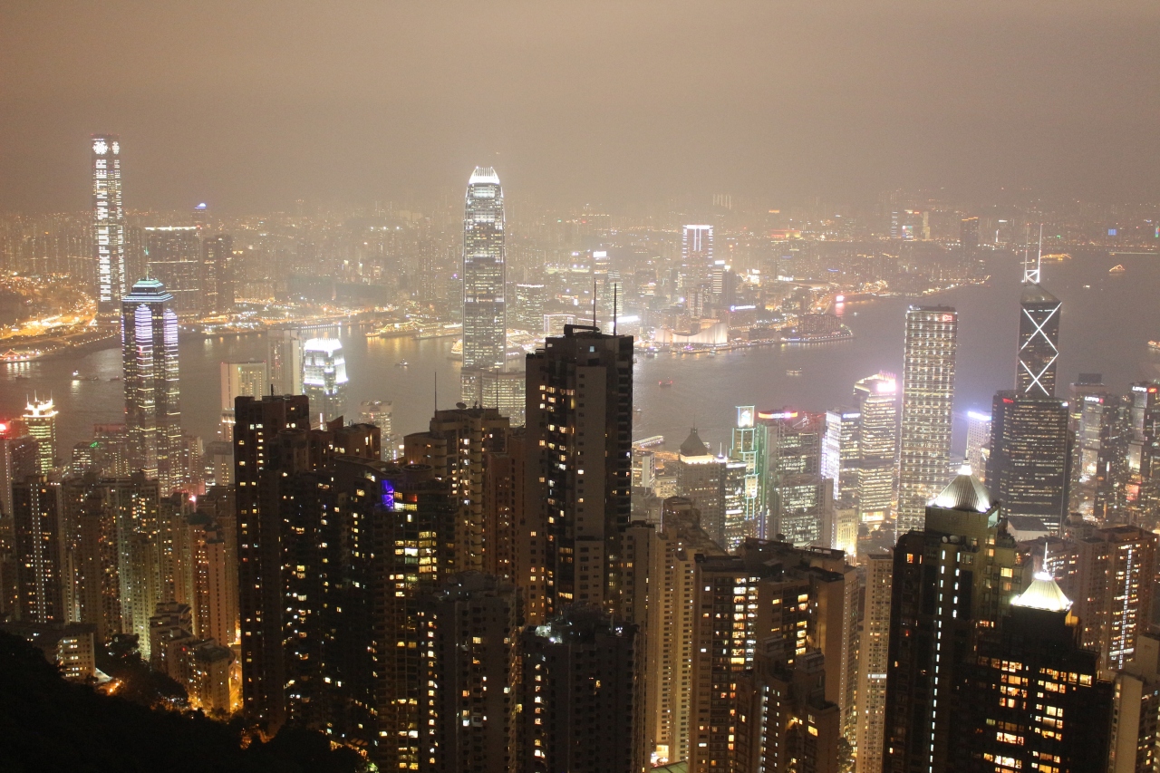 いくつかのビルの上サーチライトが少し照らされただけです。