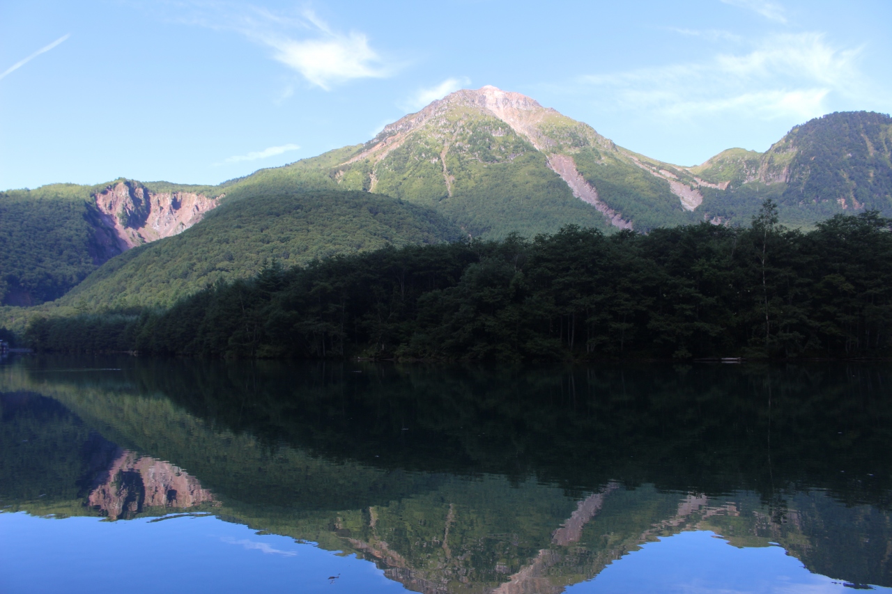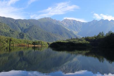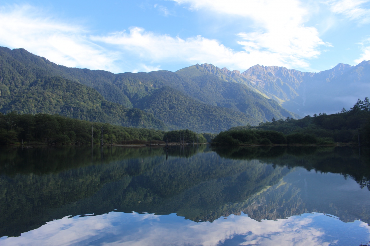 まだ朝早かった(8時頃)からか、そこには鏡にような湖面に穂高の山並が写って、大変美しいものでした。