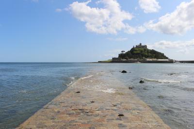 ペンザンスからバスで向かいました。途中から島が見えてきて、大きな駐車場らしき所で降りてしまい、そこから船着き場まで少し歩くことになってしまいました。