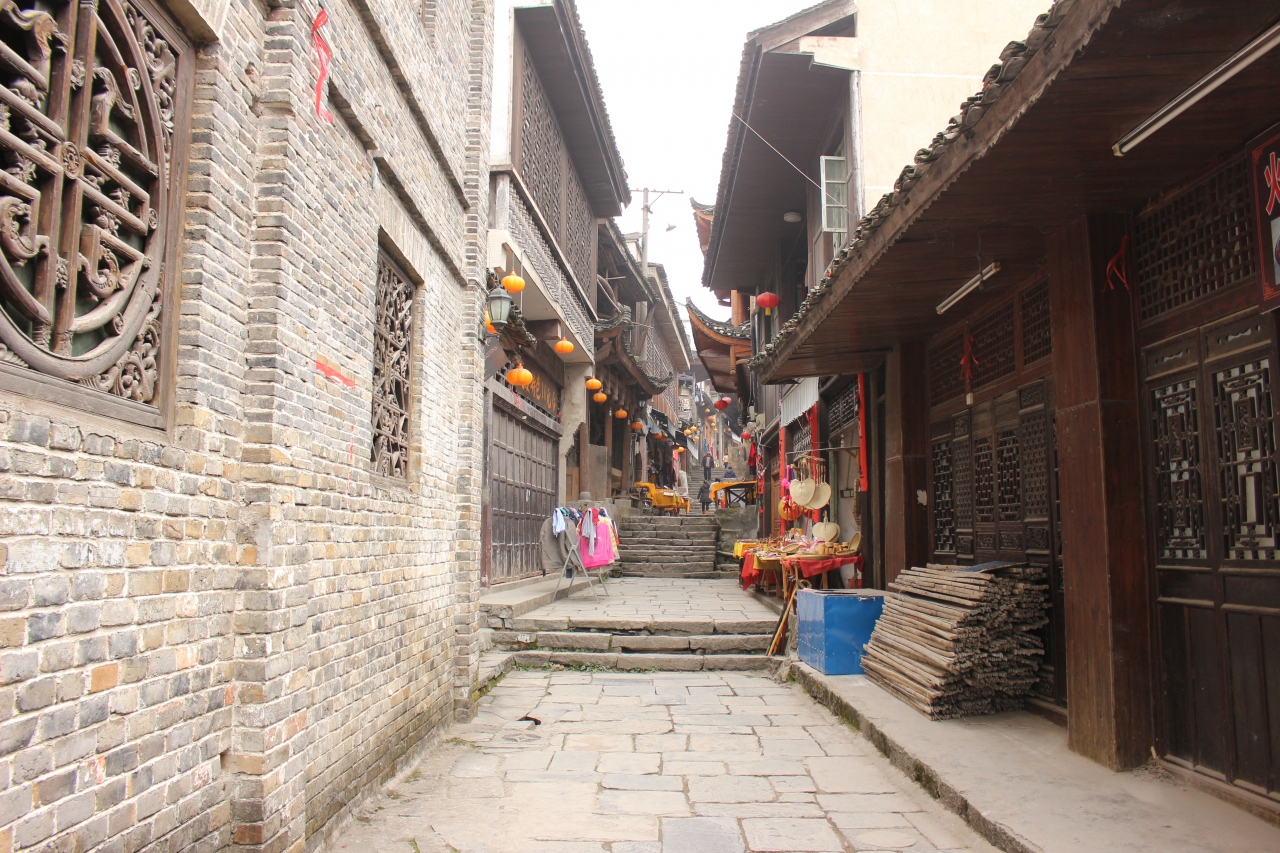 langshan、八角寨景区への観光の拠点。バスターミナルから近く、ほどよくきれい。
