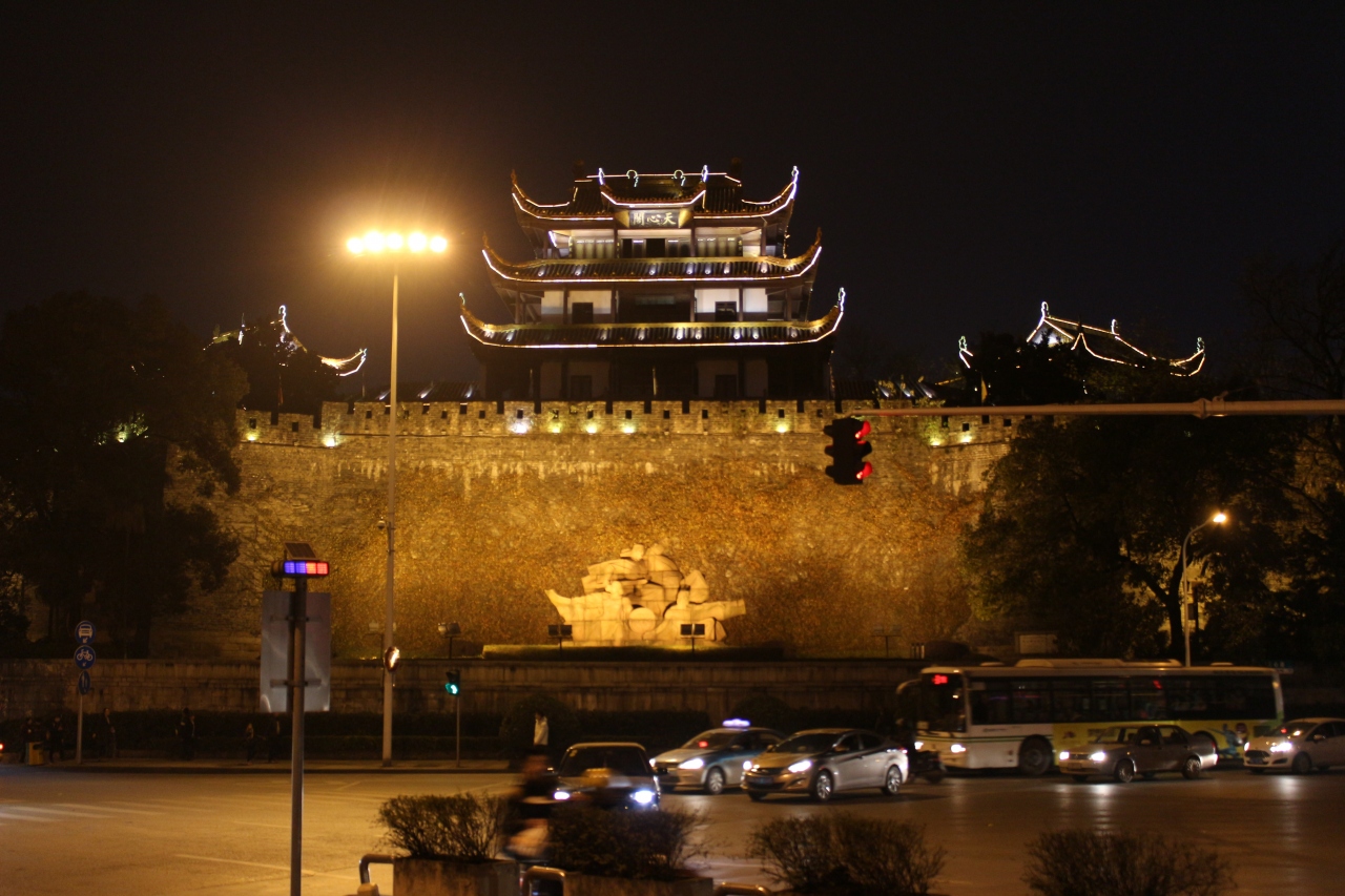 長沙東バスターミナルから約2.5時間、そこから市バスに乗り換えて、巴陵広場へ到着。