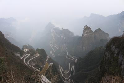 ここの天門洞を目当てに中国に来たのに、なんと冬季は凍結による安全確保が