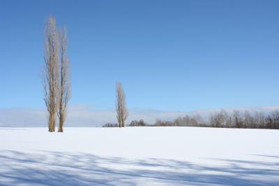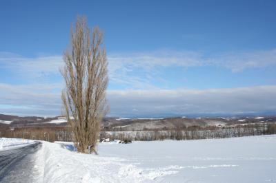 丘の上のポプラの木が印象的で、いかにも冬の美瑛という感じでよかったです。