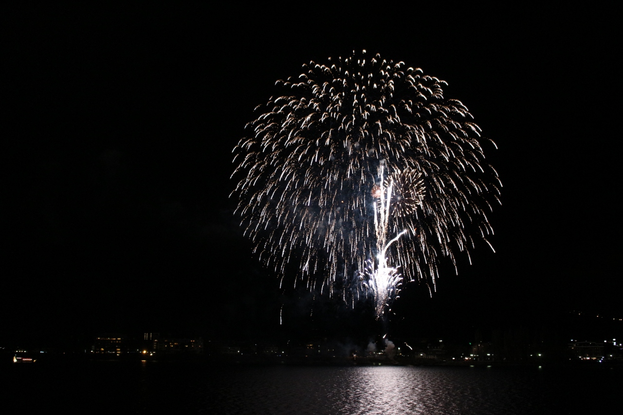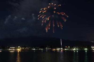 花火が始まる頃に、富士山に雲がかかってしまい、