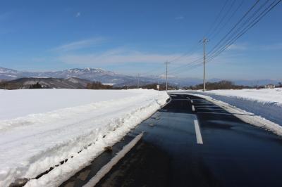 日陰部分は雪が残っており、そこの辺りはゆっくり走ることが前提ですが、