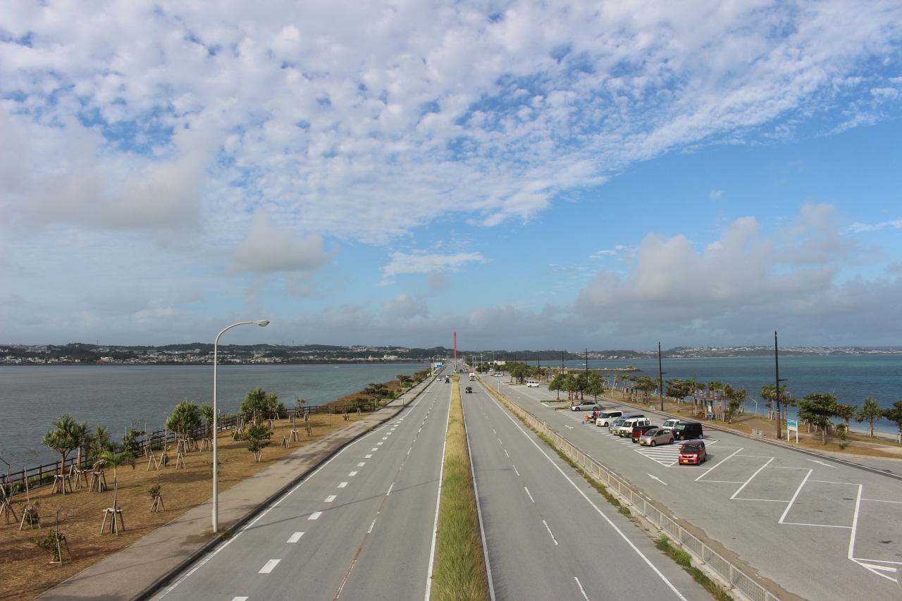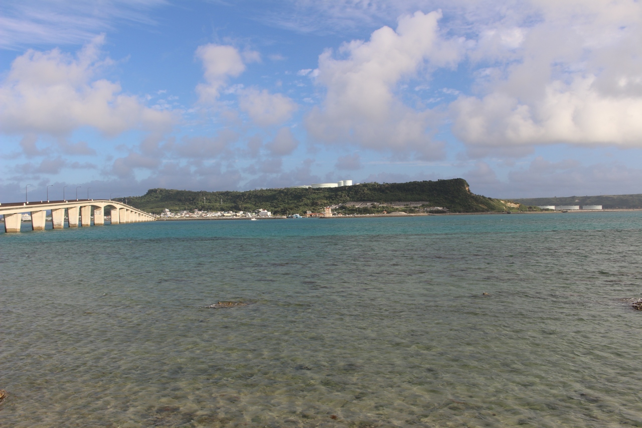 まだ朝早い時間でしたが、海のきれいさと遠くに見える海中道路の景色は