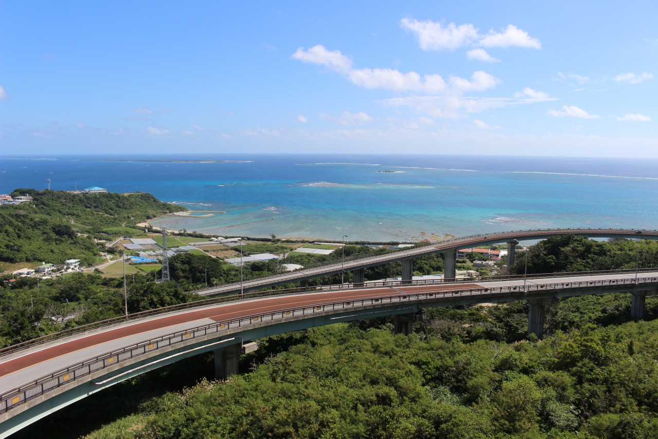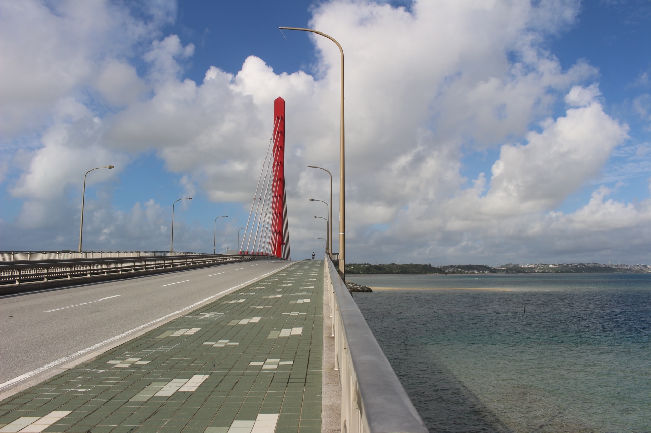 浜比嘉大橋を渡った右側に駐車場があり、周囲の海や橋の景観が