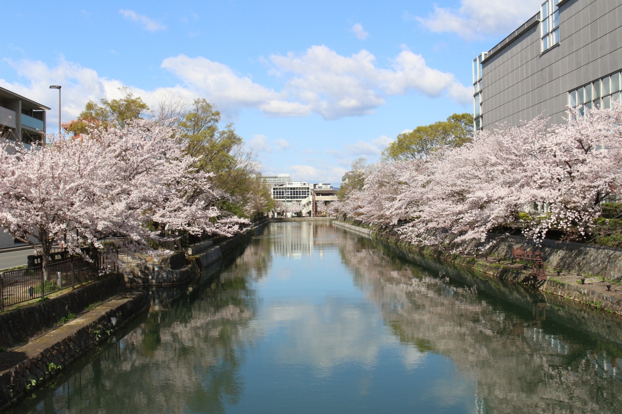 南禅寺から平安神宮の前に疎水が流れていて、桜の景色がすばらしいです。遊覧船も出ているようでした。ただ陸地の公園としては、美術館やテニスコートなどになっているようで、平安神宮前の敷地全般を岡崎公園と呼んでいるようです。