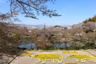 吉野の桜を見に行った際に、近くの桜の名所ということで桜はほぼ終盤でしたが訪問しました。池越しのお堂と桜の景色が見たかったですが、池は一周できず、見る方向が限定されて少し残念でしたが、高台から花の地上絵?が見えてよかったです。入場券売り場があったので、料金が必要なのか確認したら、園内の散策は無料とのことでした。