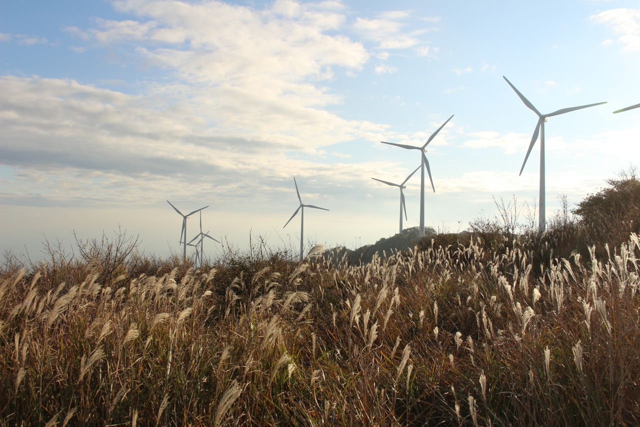 稲取の細野高原にススキを見に行った際、丘の上に風車が並んでいて壮観な風景でした。