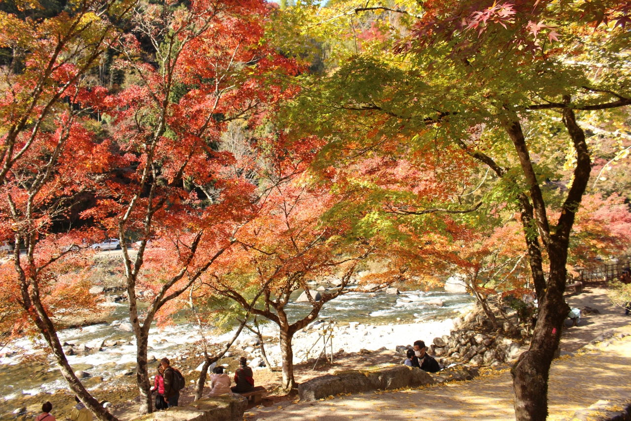 紅葉の見頃情報のWEBサイトで、中部地方の紅葉ランキング1位にたびたび登場します。公式駐車場は1000円ですが、民間の駐車場も500円から1000円でいくつかあります。川沿いに木々の紅葉が広がっていてとてもきれいですが、自分の嗜好とは違う気がして、ただそれだけのような気がします。紅葉時期限定の観光名所だと思います。