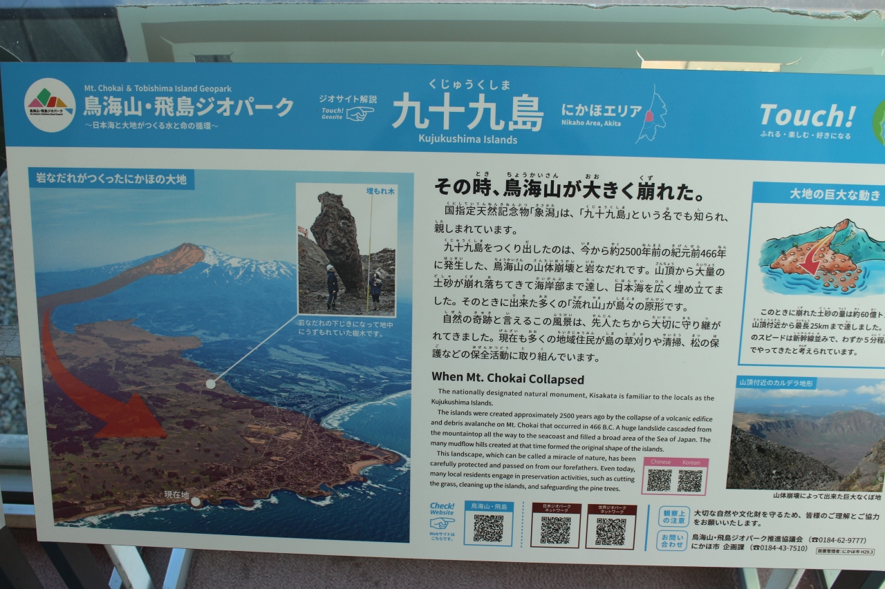 象潟とも呼ばれ、どこが島なのだと思いましたが、火山の噴火の溶岩流で島の原型が出来、まわりが海だったのが、約200年前に隆起して陸地になった場所です。