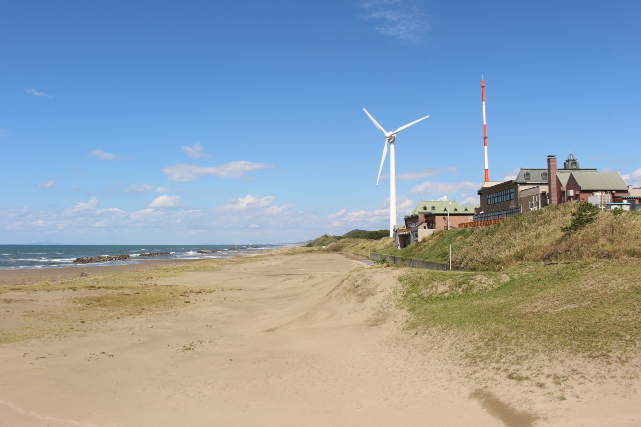 高層階に温浴施設がありガラス張りの温泉から周囲の海や鳥海山も見え、景色がすばらしいです。しかも350円と格安。展望台もあります。(ただガラスがきれいではない)