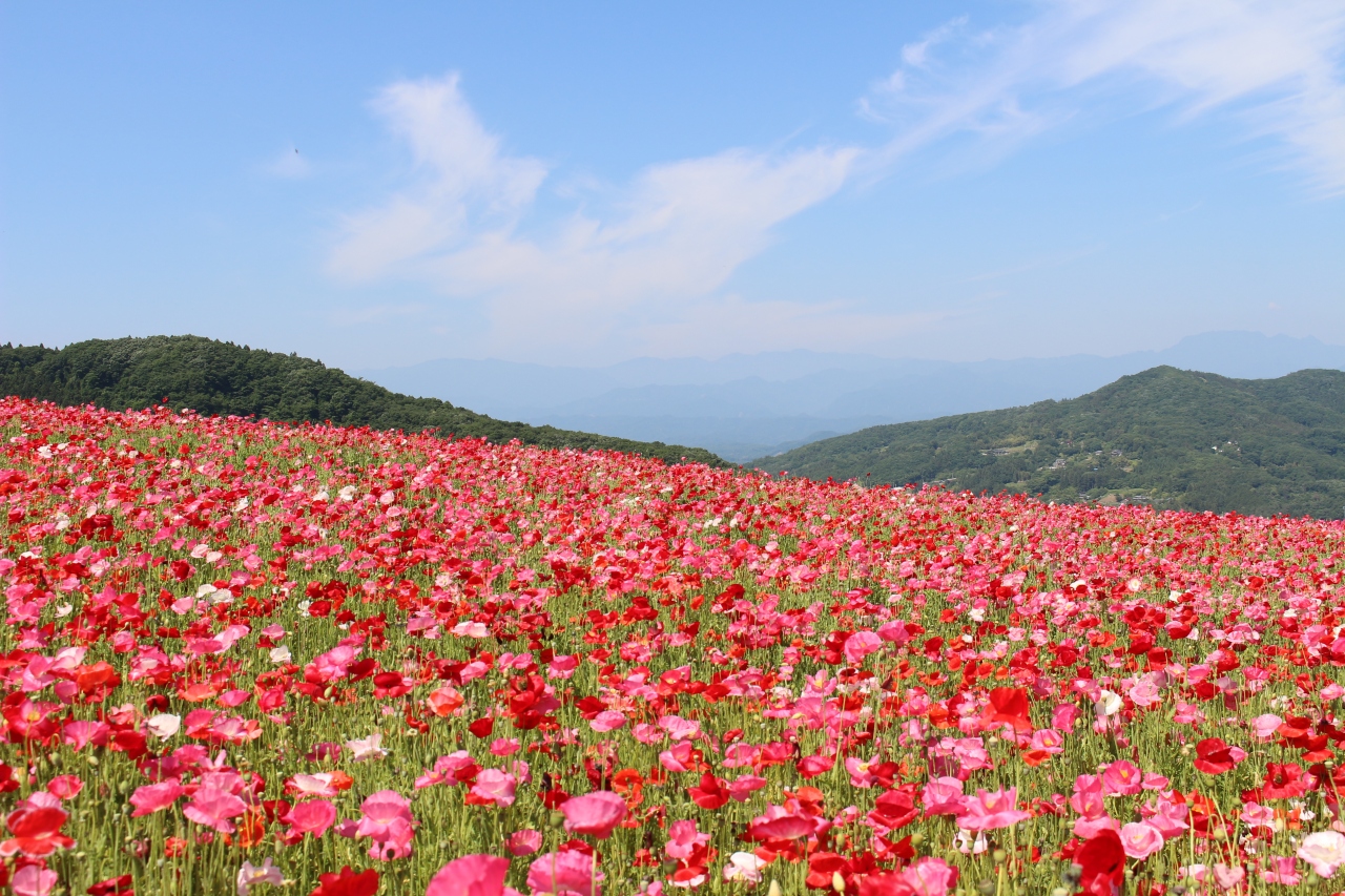 山の斜面に沿って一面にポピーが咲く風景に惹かれ行ってみました。