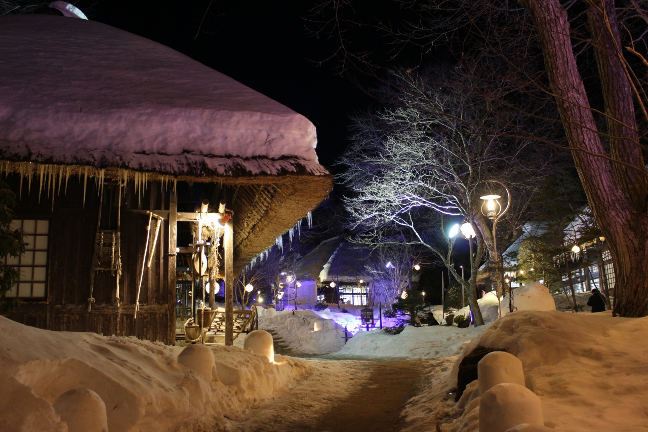 夜のライトアップを見るために行きましたが、昼間の景色もみたいと早めに到着しました。かまくらエリアの中には入れないため、遠目から見るのみで、昼間のインパクトはゼロでした。暗くなるのを待って夜訪問。夜はなかなかの景色で、ちょうど満月の夜で月明りの空もきれいでした。