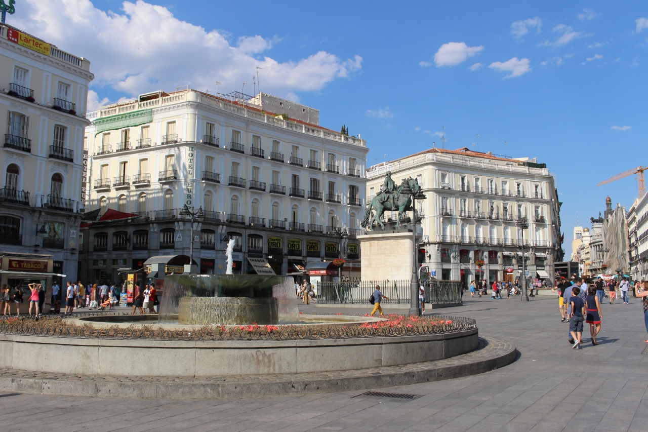 マドリッドの下町の中心で、一番人が多く混雑しています。スペイン国道の起点(0Km地点)でもありますが、複数の通りがここにつながるため、行き交う人も多く、雰囲気に疲れを感じます。落ち着きたいならほかの場所に移動するのがよいと思います。