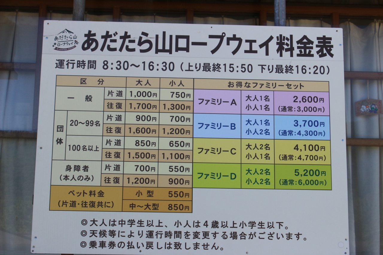 ゴンドラで山頂駅まで10分、山頂駅から5分ほど歩いた薬師岳展望台(ここに有名な、ほんとうの空の記念碑?があります)からは安達太良山や周りの山々が見え、山頂までは1.5時間くらいです。当初安達太良山登山の下りで利用しようと思っていましたが、時間もあったので、結局歩いて下山したため、利用しませんでしたが、宿泊した岳温泉の宿で割引券(往復1700円→1300円だったと思います)があり、利用するなら事前に宿で購入しておくとよいと思います。