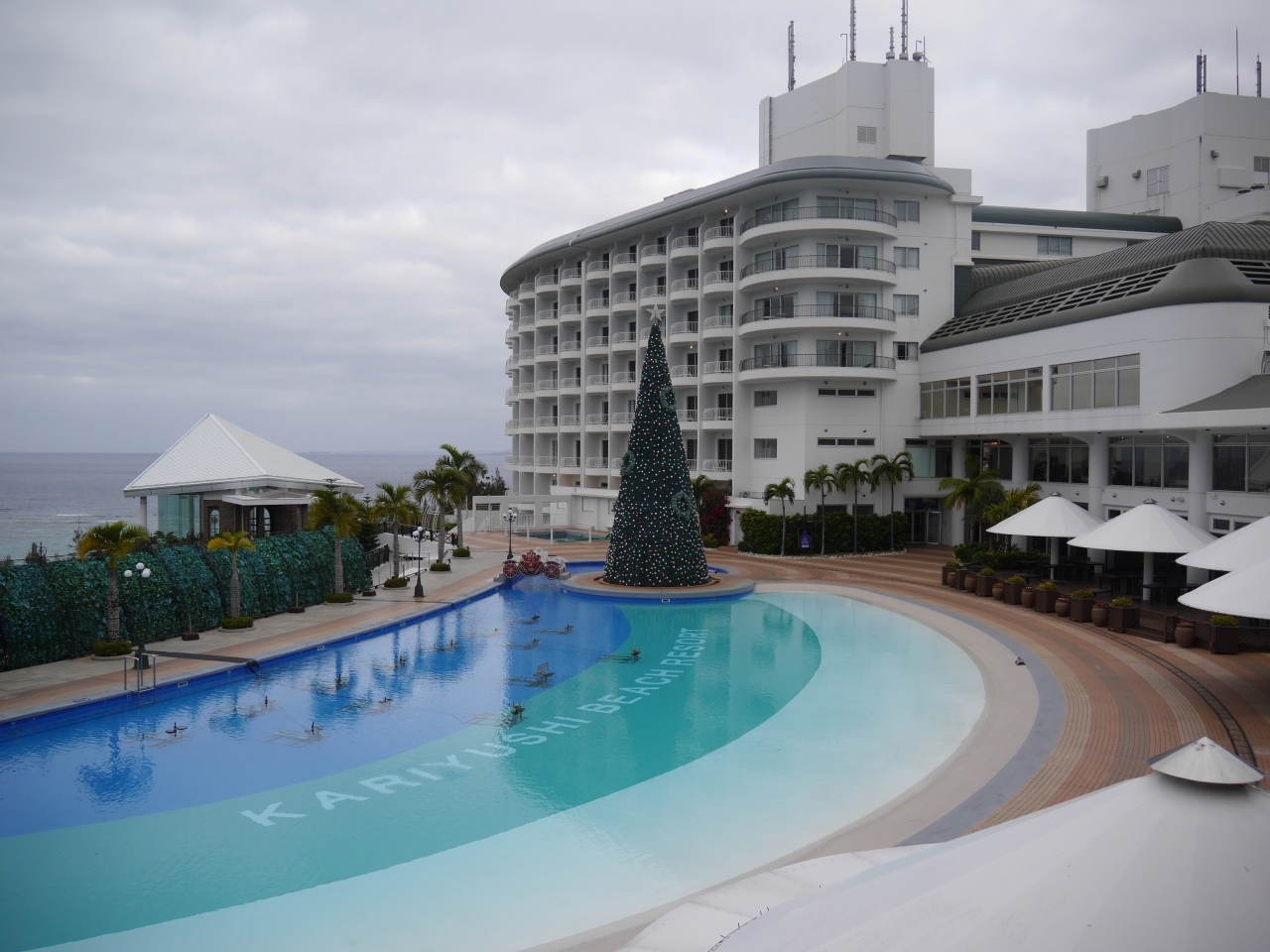 ウイングタワーとオーシャンタワーの2棟からなる大型のホテルです。プールや大浴場、土産売り場、コンビニ、レストランなど館内施設は充実していますが、大規模ゆえ移動が少し大変です。