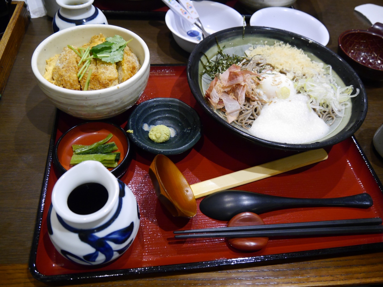 旅客ターミナル4Fのレストランフロアにあります。沖縄最後の食事だったので沖縄料理(そば)で締めるのも良かったのですが、和食の優しい味を求めて訪れました。お蕎麦の定食メニューから冷し月見山かけそばと天丼の定食、冷し月見山かけそばとカツ丼の定食を頂きました。約1000円と手頃な価格なうえ、蕎麦の喉ごしも良く大変美味しかったです。