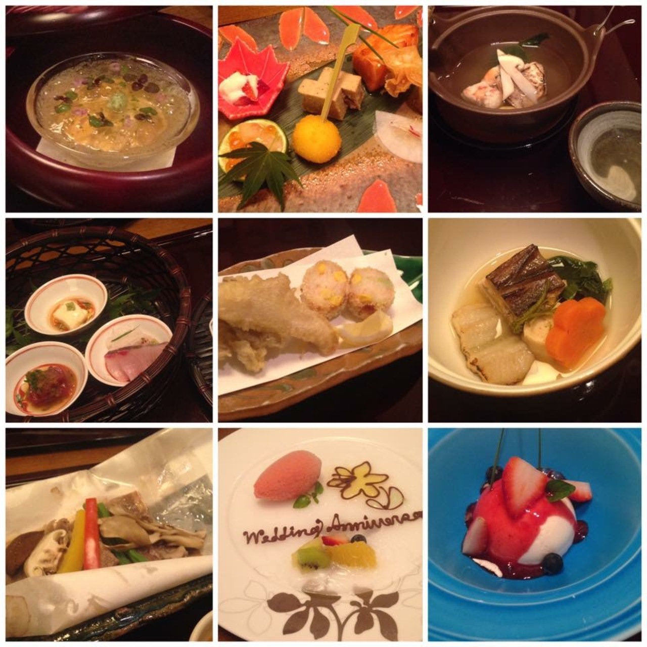 チェックイン時に結婚記念日の旅行と伝えると、夕飯時にメッセージ入りのデザートプレートでお祝いして写真をとってくださいました。おもてなしのきめ細やかな対応に感動しました。食事処は個室のような造りになっているので、ゆっくり静かに食事を楽しむことができました。また、素材がいかされたこだわりの食事内容で、秋を感じさせていただき、大変おいしくいただきました。地元の食材をふんだんに使って一つ一つ丁寧に説明してくださり、メインのお肉を調理するパフォーマンスを目の前でしてくださったり、目でも舌でも楽しめました。