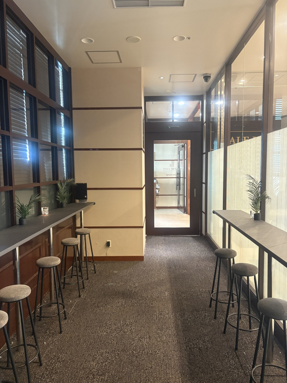 ラウンジは24時間使用可能(ラウンジ内のみ飲食可能、持ち出し禁止)で、