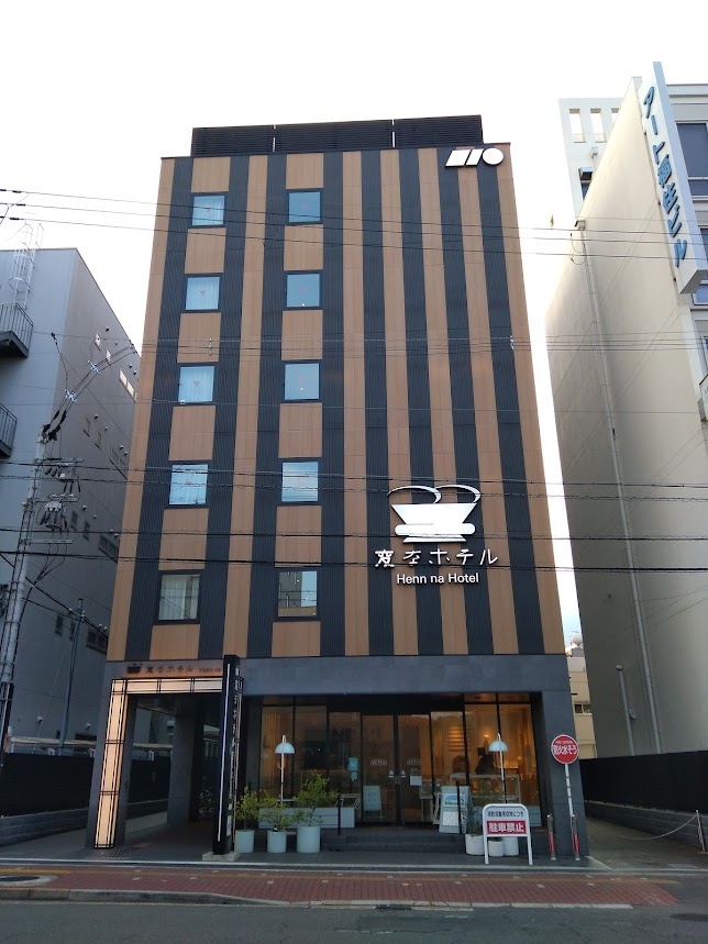 広島駅新幹線口を出るとチョイ向こうに看板が見えます。歩いて5分もかからないくらいです。部屋はあまり広くはないけど寝るには十分です。コンビニは近くに2軒。駅前には居酒屋などが何軒か在って夕食には困りません。朝食は品数はそれほど多くは無いけれど美味しく頂きました。