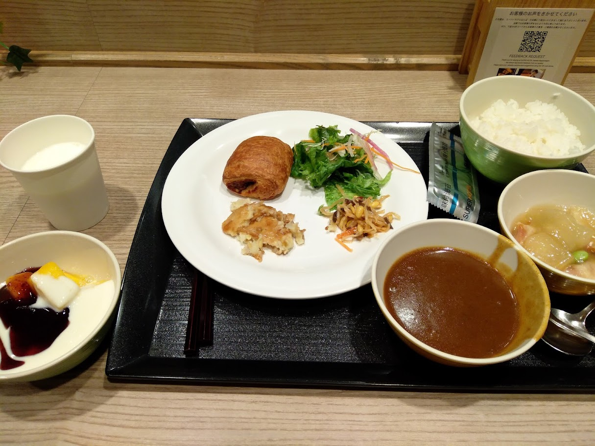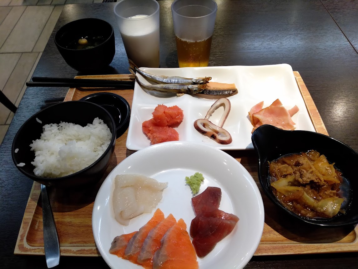 狸小路5丁目ということでホテルらしき建物を探して行ったけど、なかなか見つけられません。いったん通り過ぎて再度じっくり探してやっと見つけました。エントランスの間口は2mほど。そのまま20mほど奥へ行くとやっとホテルに到着。落ち着いた雰囲気のホテルでした。チェックインしてアメニティーをピックして客室へ。狸小路の喧騒は全く気になりません。おすすめは朝食です。色んなおかずは美味しかったけど、私自身は米の飯が最高でした。