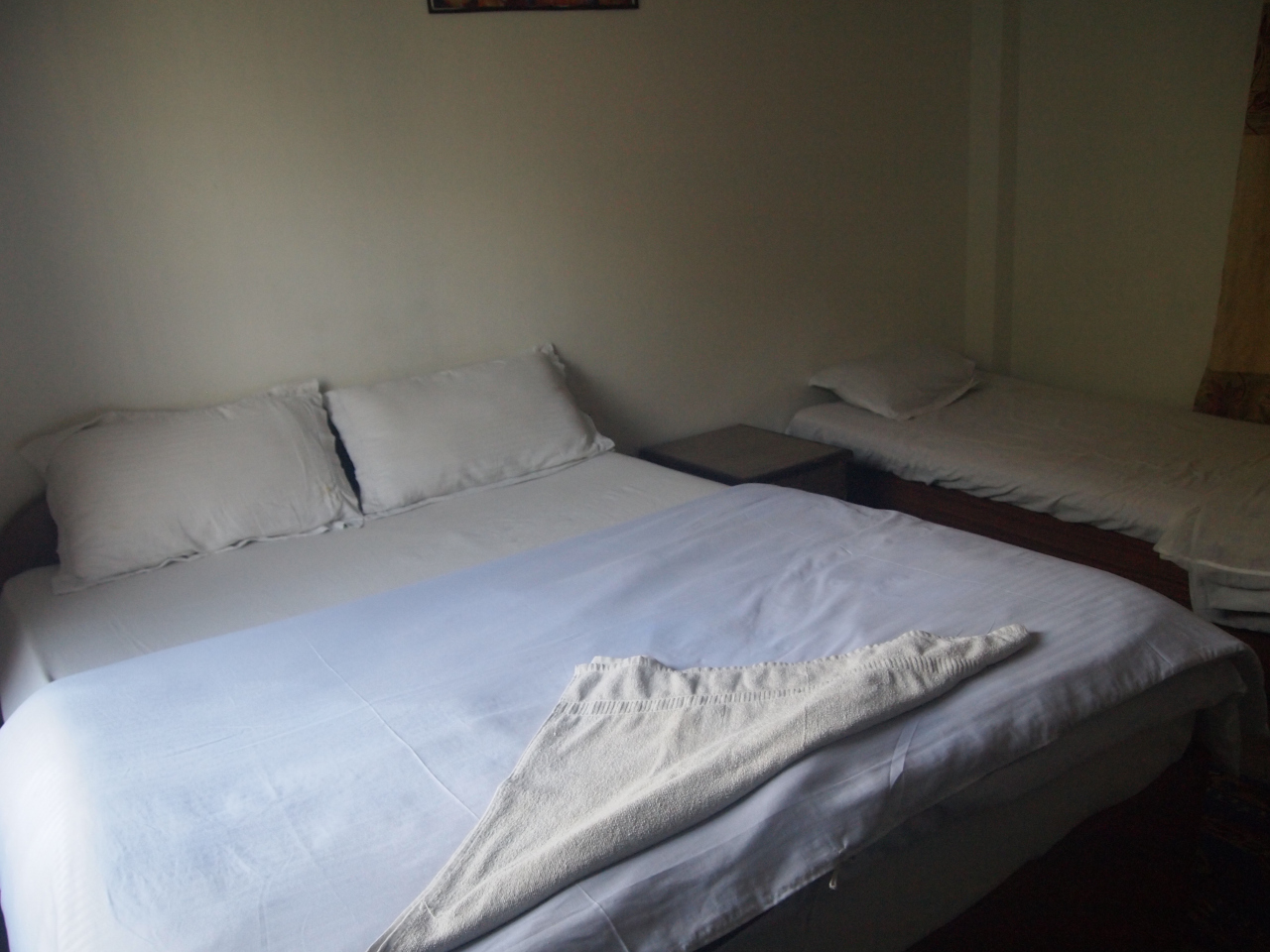 とにかく遮るものが無いので部屋からも中庭からも眺めは最高です。客室の内装は木材をふんだんに使ったカントリー調です。風呂はバスタブありだったので久しぶりにゆったり浸かれました。エアコンの効きは良くはありません。最高の30度にしてもなかなか暖かくなりません。朝食は中庭でマチャプチャレを眺めながら最高の気分でした。