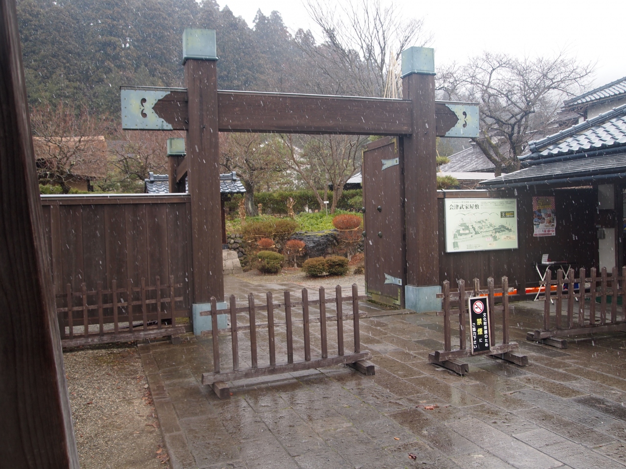 千の利休の子の少庵は利休の死後、当時の会津の領主の蒲生氏郷に匿われていました。少庵が氏郷の為に建てたのが茶亭麟閣です。明治期に他所へ移されていたものが再移築されたそうです。今でも茶道各流派の茶会に利用されているそうです。表側よりも裏側に延々土塀が続いていますがこちらの方が見応えがあるような気がします。茅葺の屋根にみずみずしい苔が生えてとてもきれいです。八重の桜のワンシーンもこちらでロケをしたそうですよ。