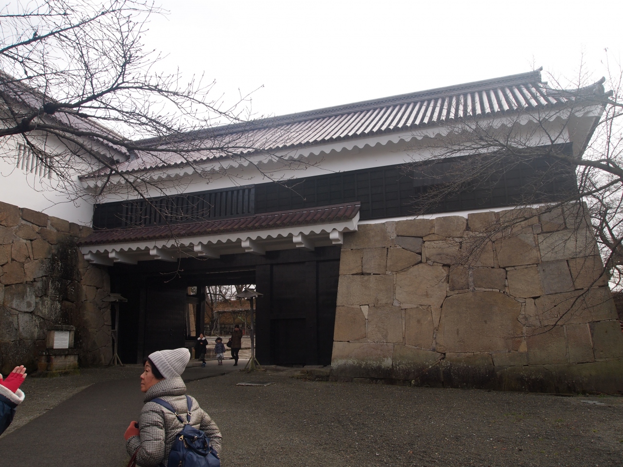 帯郭と本丸を隔てる門です。門の上に渡り櫓を載せた形式です。現在では表門とも呼ばれていますが、本来の正門=表門は本丸の北側にあり枡形を備えた厳重なものでした。こちらは枡形は無く鉄門一重です。鉄門の両脇は切込み接ぎの石垣で固められた江戸時代の建築様式になっています。