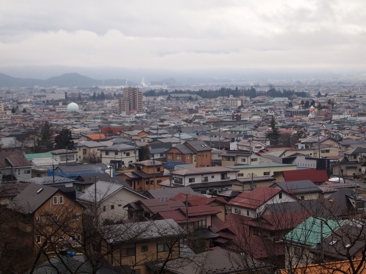 若松市内は高層ビルが無いのでかなり遠くからでも望むことができます。会津戦争で痛めつけられ明治時代に入ると破却されしまいました。昭和40年に復興され、平成23年に赤瓦に葺き替えられてやっと元の威容を取り戻すことができました。外観はほぼ元通りですが内部は近代的な博物館になっています。最上層以外は写真撮影禁止になっています。屋根上の鯱は銀箔張りで眼には2カラットだか3カラットだかのダイヤがはまっているとの説明でした。まあ、ダイヤはやりすぎのような気もしますが。明治に撮られた古い写真を見ると鯱は載っていないので、これも議論のあるところです。