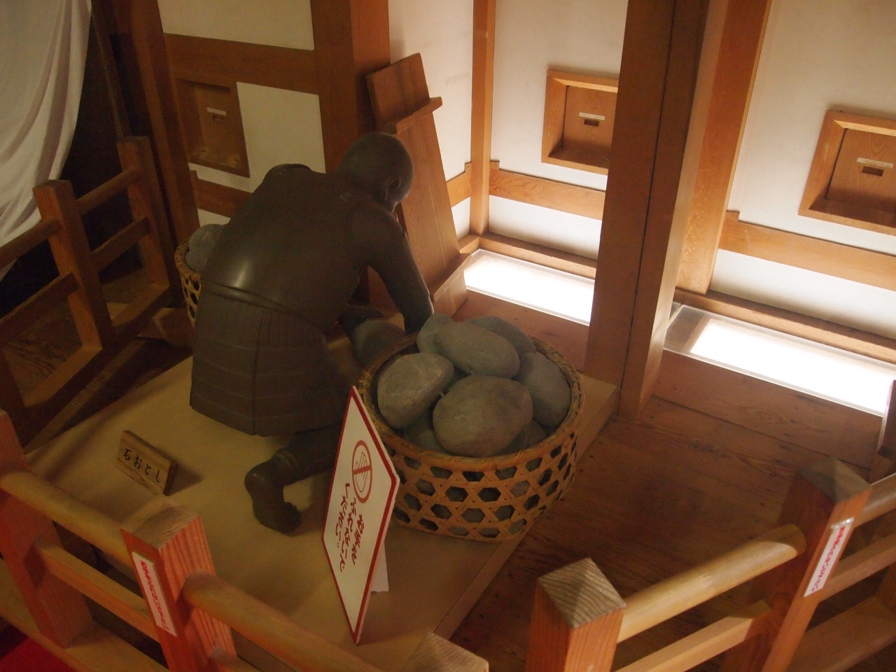 天守閣の南側、表門を経て干糒櫓へ延びる多門櫓様の建物です。帯郭から本丸への敵の侵入を防ぐための重要な施設です。走り長屋というのは普段は武具を保管してあって、いざというときはそこへ走りこんで武装を整えるということからきたそうです。建物内部は昔ながらの構造がよくわかります。鉄砲狭間や石落としなども復元され、それぞれに鉄砲を構えたり石を落そうとする足軽の人形が展示してあったりと戦いの様子が再現されていてとても分かりやすいです。