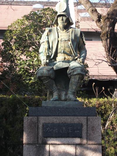 加藤清正が名古屋築城の際、自分の誕生地に近所のお寺を移築したのが正悦山妙行寺という日蓮宗のお寺です。境内には有名な長烏帽子兜をかぶった凛々しい清正の坐像がでーんと存在感丸出しです。山門や本堂は要所に金の金具を配した煌びやかな建築です。