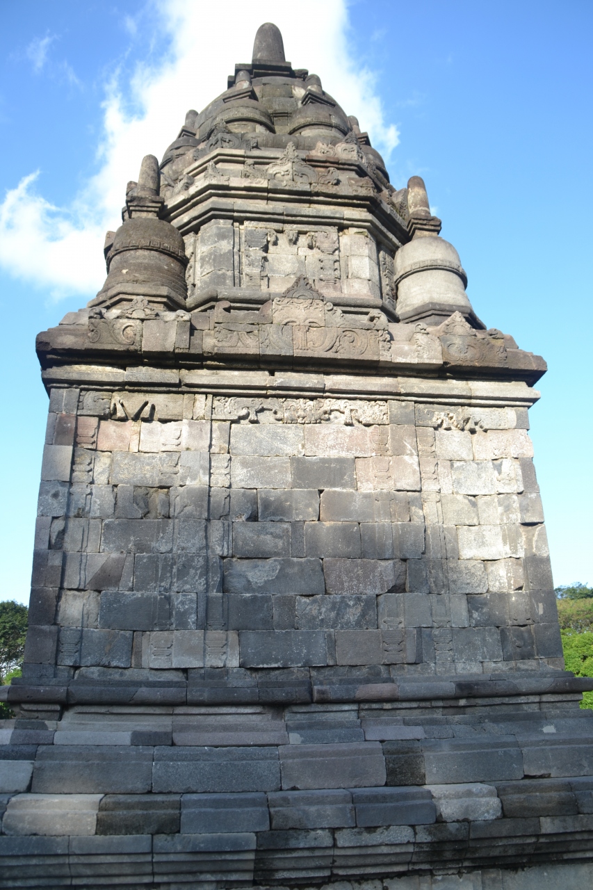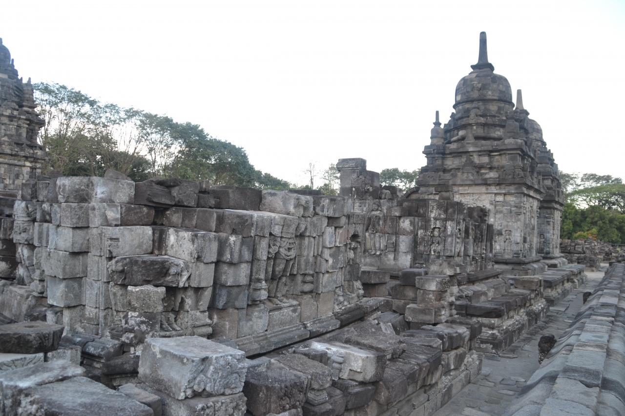 中心はヒンズー教のロロ・ジョグランと仏教のセウ寺院ですが、その他にもいくつかの小寺院があります。ロロ・ジョグランでは燃え盛る炎のような巨大な神殿に圧倒され、セウ寺院では崩壊したままの夥しい小祠堂群の味のあるさまに心を揺さぶられるました。両寺院間は1kmくらいあります。私は歩きましたがレンタサイクルや公園内を周回する乗り物もあるので楽をしたい方はそちらを利用してもいいかも。