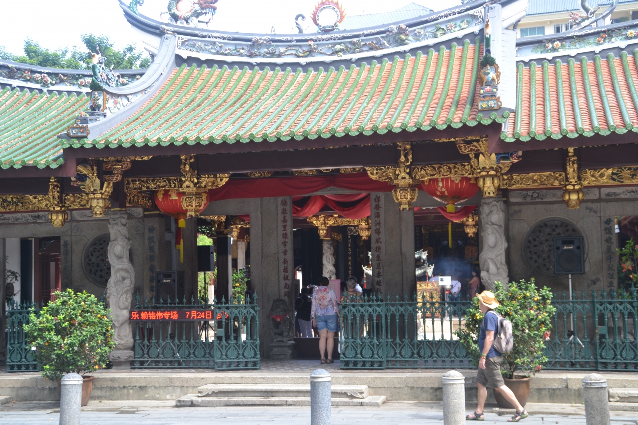 シンガポール最古の仏教寺院です。ホッケンとは福建のことで、中国の福建省から来た人たちが建立したそうです。ですから日本のお寺とは違って朱や金を使った華やかな雰囲気です。お祀りされているのは航海の神媽祖様や三国志で有名な関羽などで、参拝客や観光客でにぎわっています。