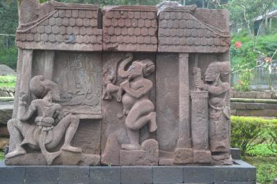 上がった先は広い芝地。その先は門が無く階段だけになっています。メインは第?ステージです。本殿と小祠堂と多くの像とレリーフが私たちを出迎えてくれます。境内にあるレリーフは崩壊した小祠堂のものと思われます。いくつかの彫像とレリーフは躍動感とパワーを感じさせてくれます。