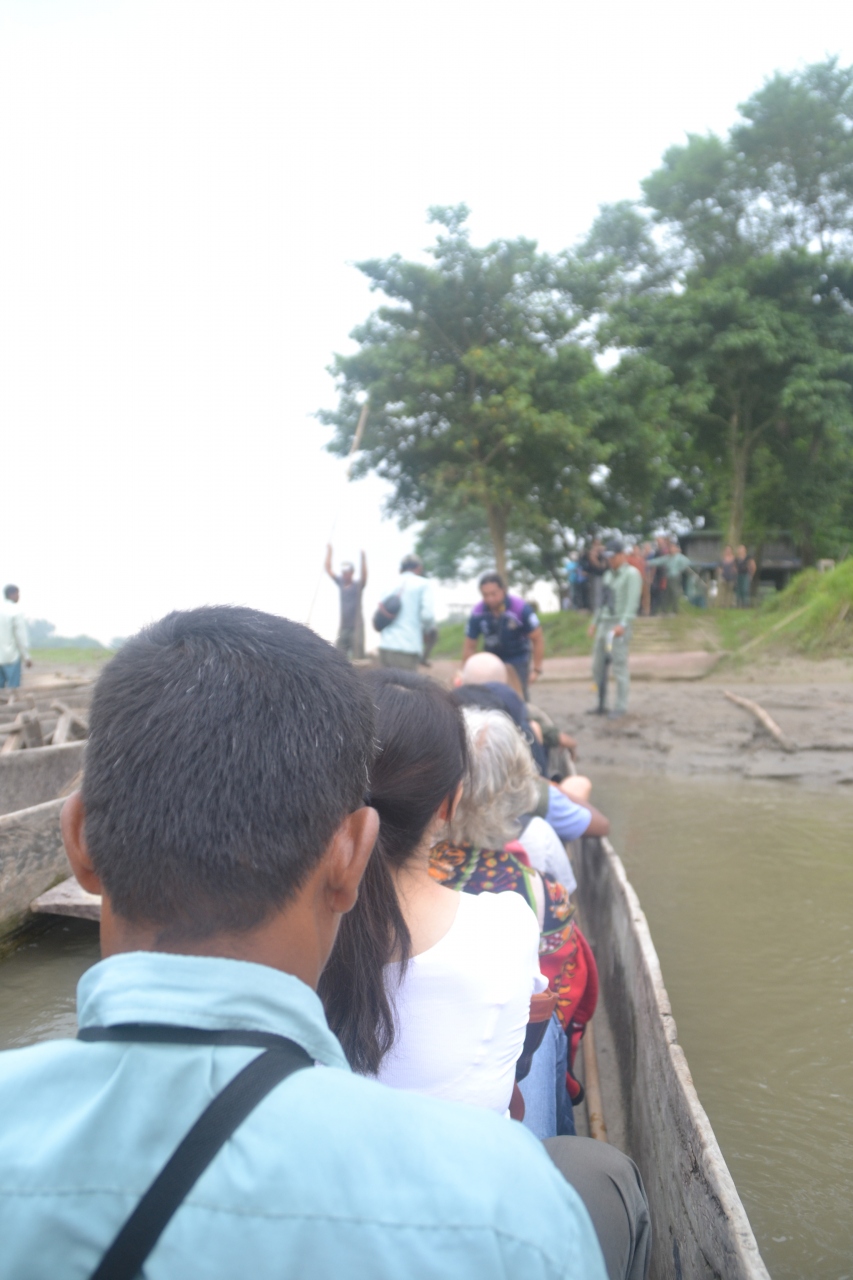 朝食後、8時頃だったかカヌー乗り場に向かいました。他のツアー客も同じ行程のようでたくさん集まってきました。最初にガイドから手足をカヌーの外側には出さないように注意がありました。だって、川にはワニがいるから。見えるのは川に浮かぶワニの背中とカラフルな鳥たちと時折草むらから顔を出す鹿たち。カヌーは流れに乗って静かに下っていきます。聞こえるのは船頭さんの櫓の音だけ。