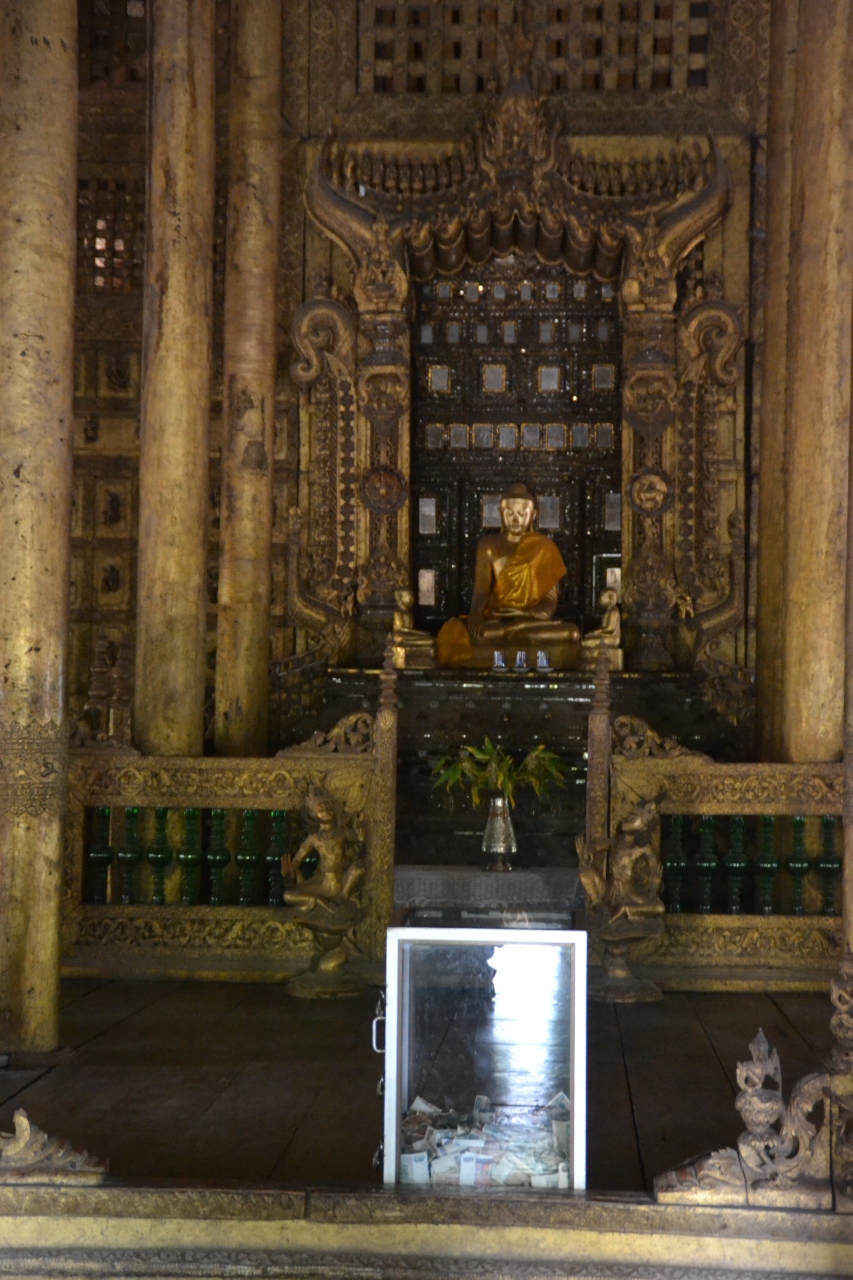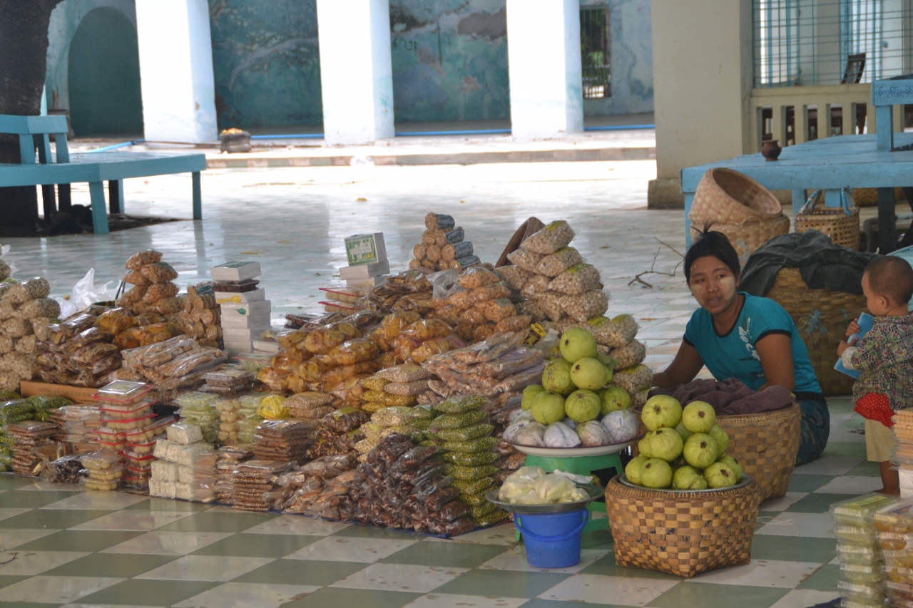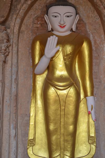 SHWE LAKE TOO寺院です。メインの通りからチョット中に入ったところにあり、まわりは荒地に囲まれています。周壁は崩れかけていい雰囲気を出しています。遺跡好きにはそそるものがあります。寺院はコンパクトにまとまり、安置されている仏像のお顔は他の寺院のそれとはちょっとだけ違っています。なぜか爪がピンク。訪れる人も少ないので日陰で休憩していたら、ついうとうとしてしまいました。