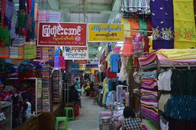 一度は見ておこうと、道路の横断の仕方にも慣れて暑い中行ってきました。たぶん4階建てだったと思うけど、中に入ると各店が所狭しと商品を並べ、狭い通路に店員とすれ違う人に疲れてゆっくり見て回ることもできませんでした。ミャンマー人は派手好きなのか、商品は派手な色ばかりで目がちかちかしてきます。