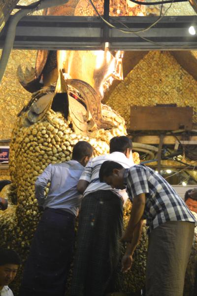 数年前のガイドブックや旅行記を見ると”白亜の”パゴダとあって、写真も白だったんです。ところがやっぱりほんとに実物は金色。そんなことほんとにする?昔は金色だったので昔に戻したのか真相は不明。
