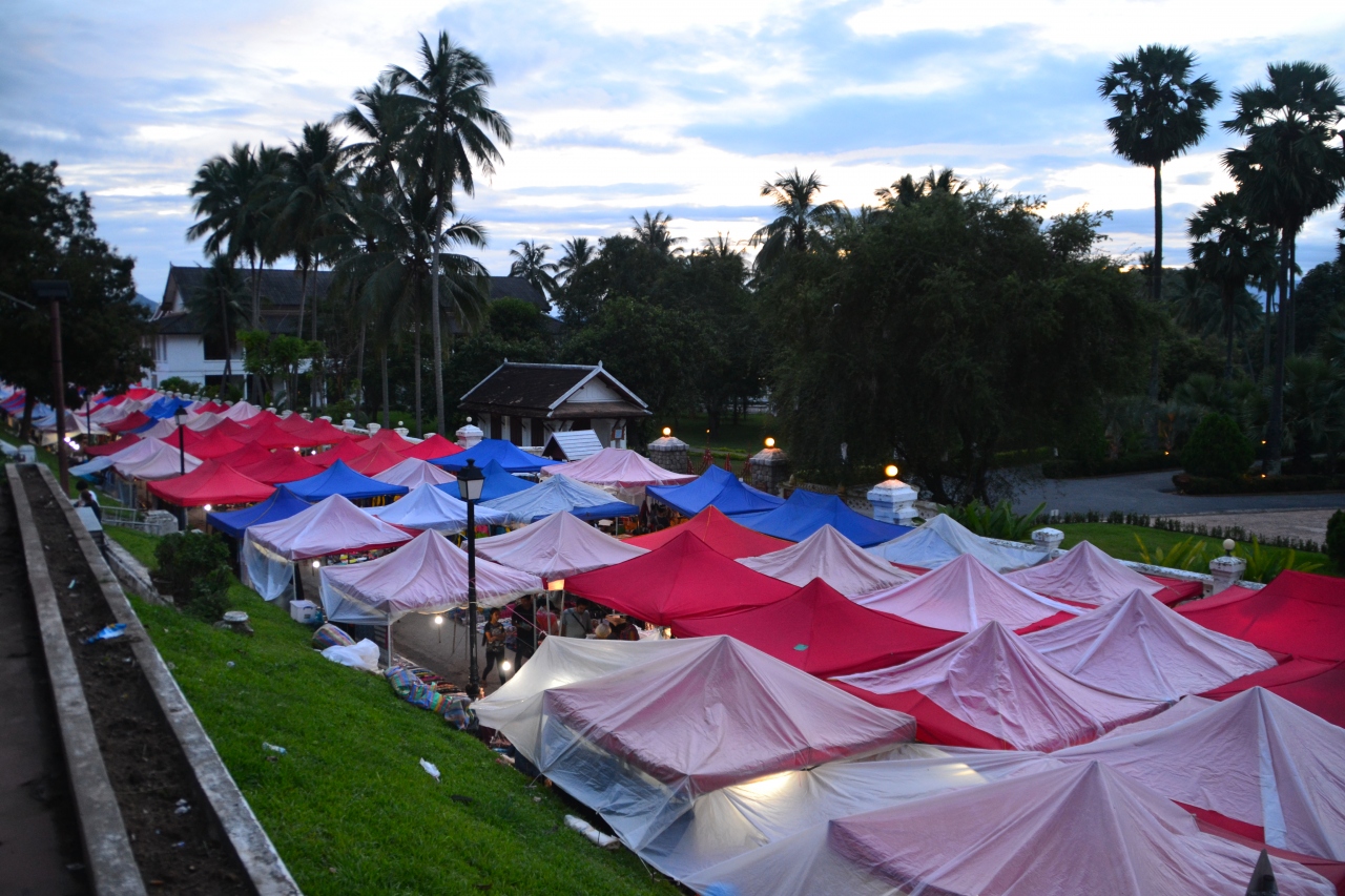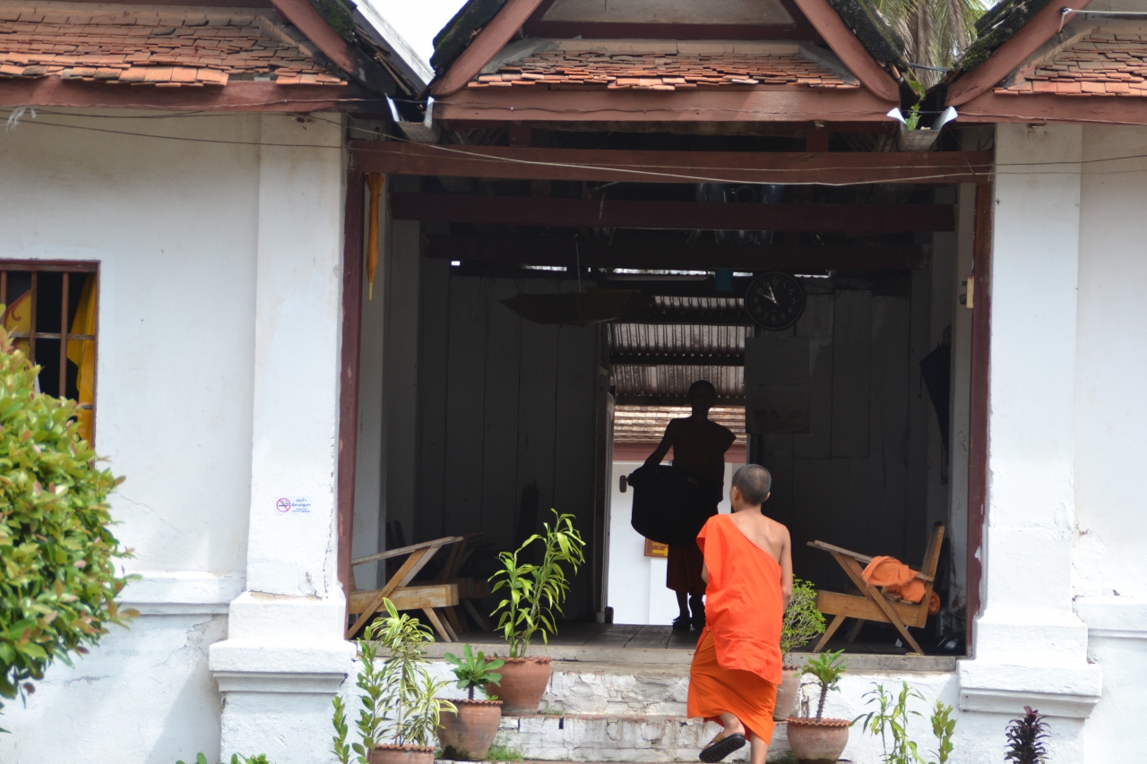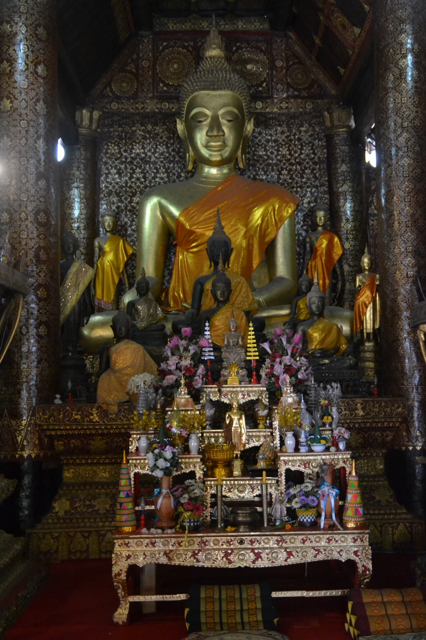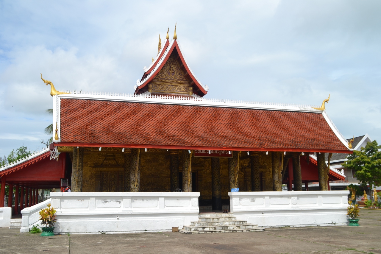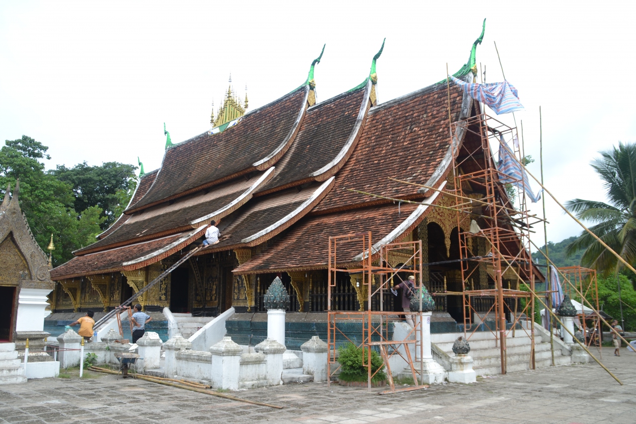 ルアンプラバンの象徴で、ラオスで最高の寺院といううたい文句に惹かれて行ってきました。確かに本堂の屋根の曲線は優美で美しく、他のお堂もなかなか素晴らしいものでした。ただ、本堂は外壁の改修中で足場が組まれており、霊柩車庫も同様で中を見ることもできませんでした。