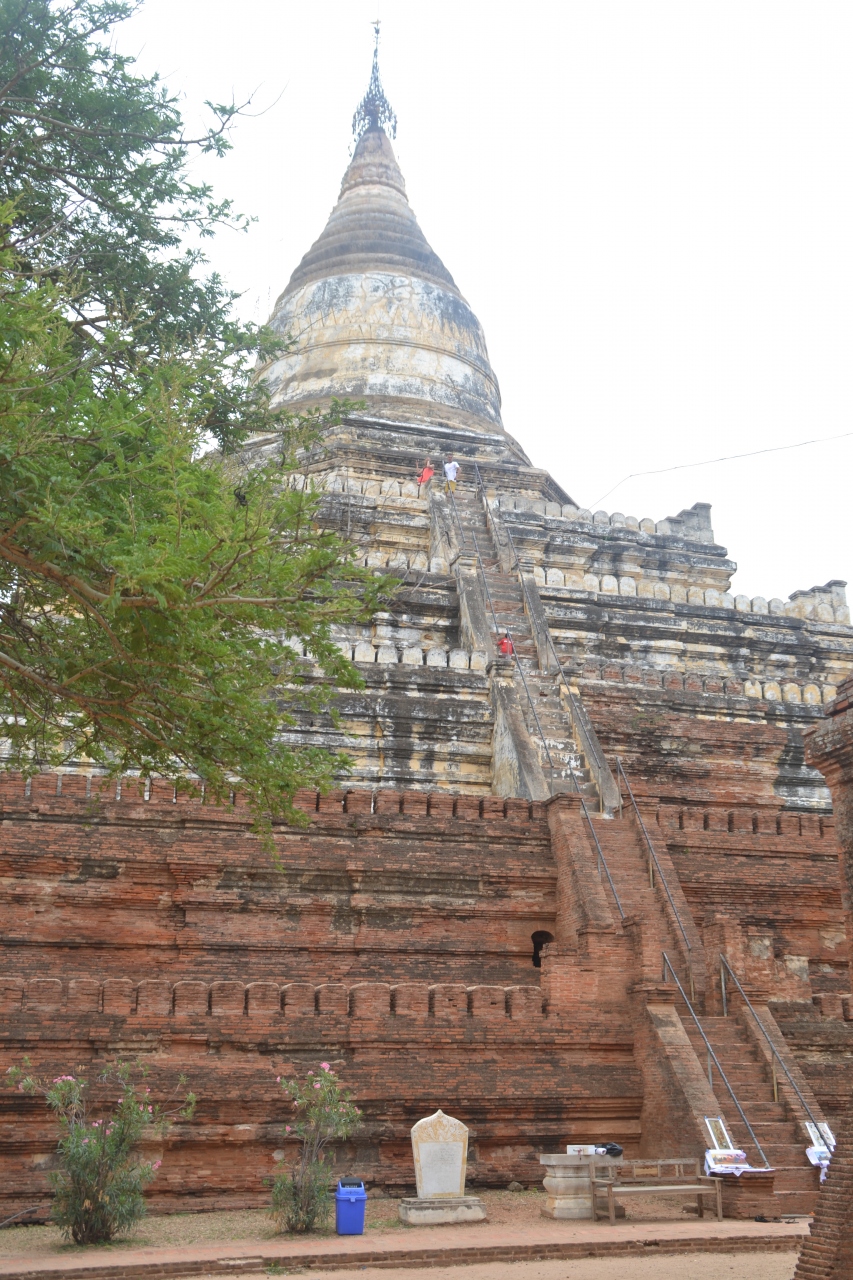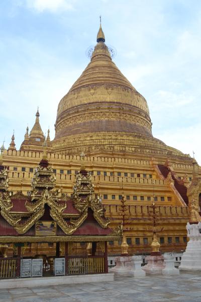 バガン滞在中昼間と夕方の2度訪問しました。最上階に上がれば、周りは視界を遮るものが無いので360度無数のパゴダや寺院が見渡せます。昼間に行ったときは観光客が数人程度。土産物屋さんの方が多いくらい。夕方訪れたときは、パゴダの周りは観光バスや乗用車、無数の電動バイクでごった返していました。パゴダの上階には大勢の観光客の顔が見えて、人気観光スポットなんだと再認識しました。サンセットは最後の最後で雲に隠れて見えませんでしたけど、チャンスがあればもう一度トライしてみたいスポットです。