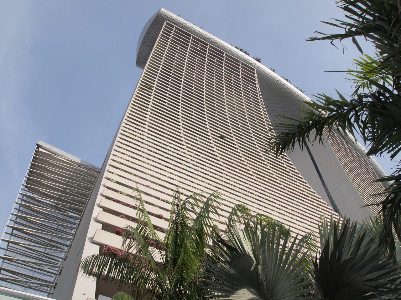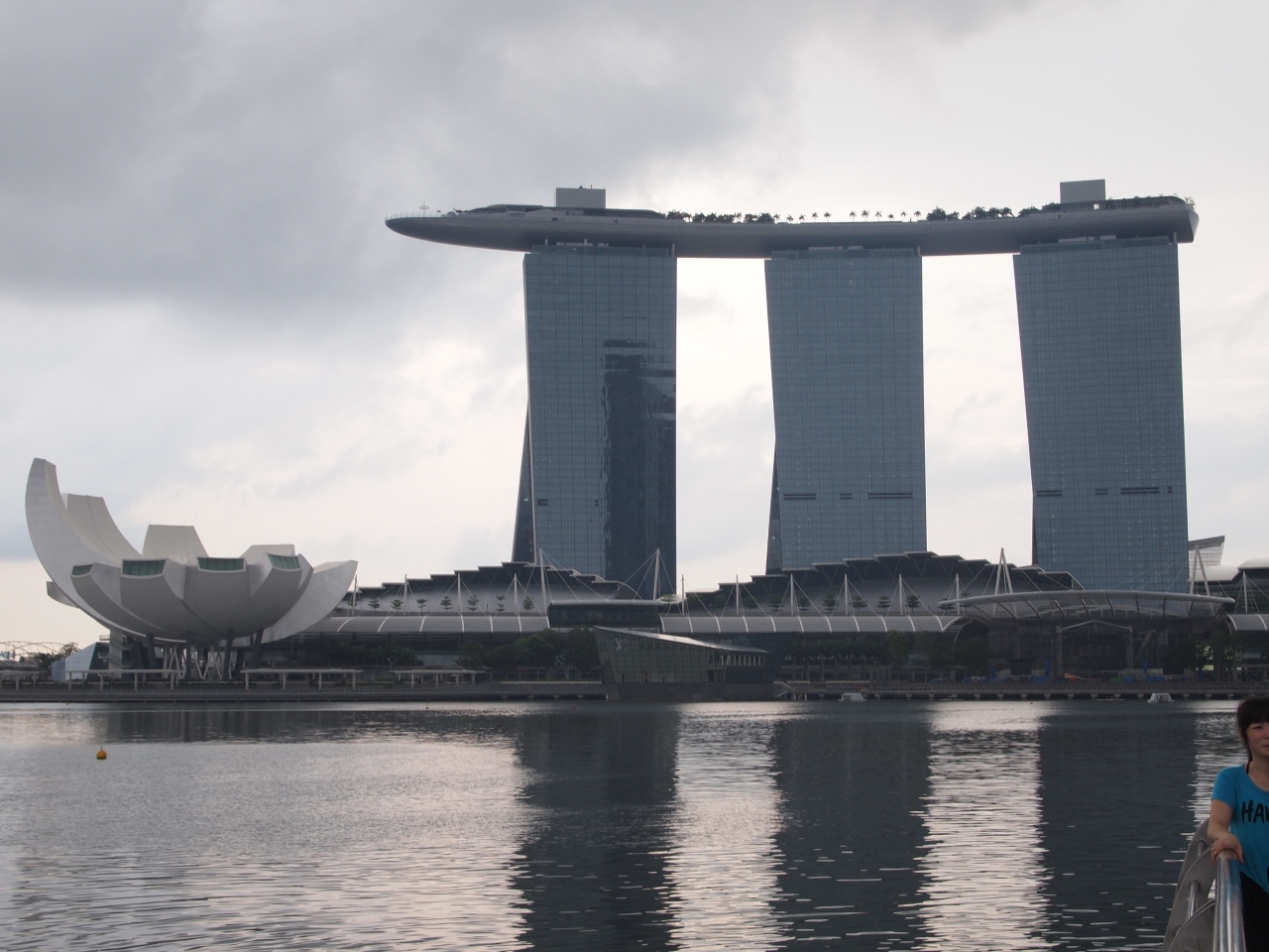 シンガポールに午後到着。とりあえずホテルにチェックイン。こちらの人はマリーナベイサンズを略してMBSと言っているみたいです。建物は写真でご存じのとおりユニークというか奇抜な建物で、地震のないシンガポールならではですね。屋上のサンズスカイパークを支える3棟の建物がホテルになっています。建築主がラスベガスのカジノ運営会社なのでこのホテルの地下にも巨大なカジノがあり大変な賑わいです。ソフトドリンクは無料です。ショッピングセンターとは地下通路でつながっていますので、買い物・ショッピング(高い店ばかり)にも便利です。